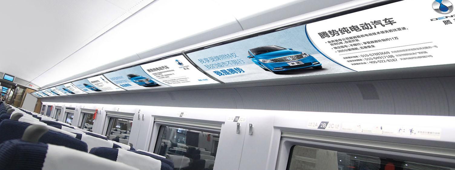 位于所有高鐵車廂內(nèi)行李架下方,對稱發(fā)布,氣勢磅礴,視覺沖擊力強(qiáng),無論坐、立、行,都能有絕佳的視覺效果,利于品牌整體性展示。