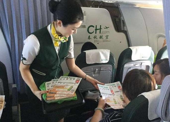 春秋航空可以互動(dòng)的媒體:客艙內(nèi)單頁(yè)發(fā)放
