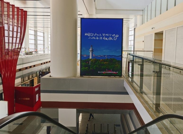 煙臺機場廣告-國內(nèi)到達行李提取大廳下電梯正迎面led廣告