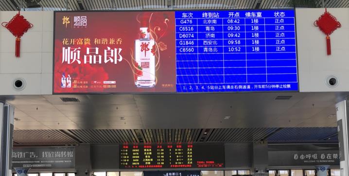榮成高鐵站廣告,榮成站led屏廣告,高鐵站廣告投放,萬事成傳媒