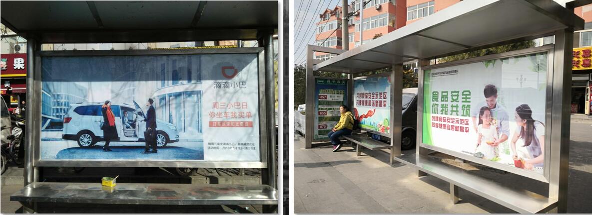 B類候車亭 指不銹鋼材質(zhì)雙廣告位 規(guī)格為0.91x1.65m或1x1.75m等 分布范圍布及整個(gè)昌平地區(qū) |