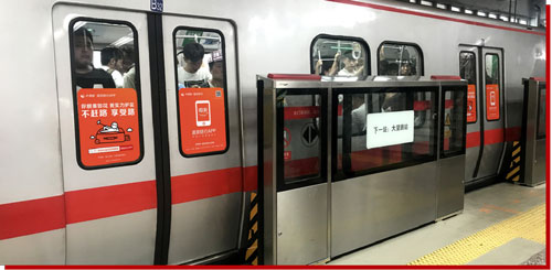 與地鐵乘客最近的廣告媒體——在車內、在上下車之間,廣告將與乘客進行深入的溝通 地鐵人群每周平均乘坐頻次為6.3次,每位地鐵乘客平均乘車時間為29.9分鐘。