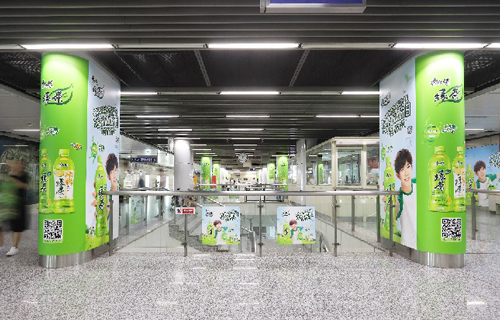 組合形式 :超級(jí)墻貼75㎡+13根站廳包柱+8塊6封站廳燈箱+玻璃貼(不少于20塊)